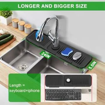 Sink Splash Guard, 5°Slope Silicone Draining Mat for Kitchen Sink, 24 inch Sink Faucet Mat, Silicone Sink Faucet Mat Splash Guard, Sink Water Splash Guard, Sink Accessories for Kitchen, Bathroom