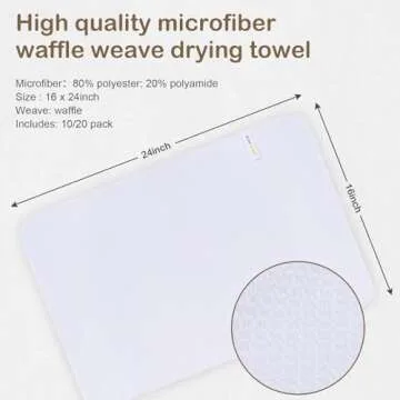 Show more Introducing the ultimate kitchen companion that combines function and style—our premium quality microfiber waffle weave drying towels! These towels are expertly crafted from a blend of 80% Polyester and 20% Polyamide, making them ideal for not just retaining dirt but absorbing liquids quickly and effectively. Unlike standard cotton towels that often leave lint behind, our microfiber towels ensure a clean, polished finish every time.