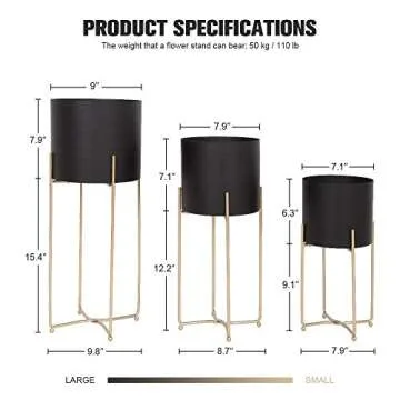 Sinolodo Mid Century Planter with Gold Plant Stand, 3 pcs Modern Planters for Indoor Plants, Metal Floor Planter Set with Foldable Stand(Pack of 3)