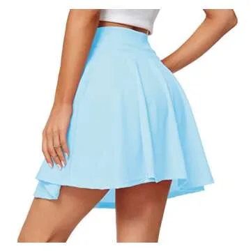 Sinono Basic Stretchy Solid Flared Casual Mini Pleated Skater Skirt (Large, Sky Blue)