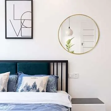 Show moreTransform your home with the SINOY Small Round Wall Mounted 20 Inch Gold Circle Mirror, designed to elevate any room's aesthetic while providing you with practical functionality. Crafted with an advanced polishing process, the aluminum alloy frame shines beautifully under all lighting conditions. This premium quality material not only emphasizes durability but also resists rust and corrosion, ensuring that your mirror maintains its stunning appearance over time. Measuring a perfect 20 inches in diameter, this mirror is ideal for various spaces, whether it’s in your living room, entryway, bathroom, or dorm room. Thanks to its stylish gold frame, it adds a touch of elegance and sophistication, enriching your home decor effortlessly.