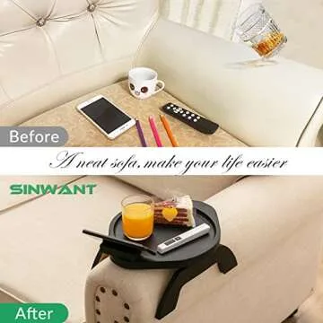 SINWANT Sofa Armrest Tray, Clip On Couch Arm Table, Foldable Sofa Arm Tray with 360° Rotating Phone Holder,Side Tables,TV Trays, Sofa Table for Eating and Drink Table