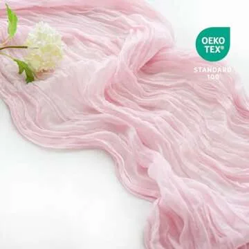 Show more This exquisite Boho Cheesecloth Table Runner is a must-have for anyone looking to elevate their table decor effortlessly. Crafted from premium cheesecloth that undergoes a meticulous manual dying process, this table runner is not just visually appealing but also soft to the touch, adding a sense of sophistication to any setting. Its sheer fabric allows it to sway gently with the breeze, creating a delightful atmosphere for your gatherings. Measuring 35 inches wide and 120 inches long, this versatile table runner is designed to fit most tables and can instantly transform your dining space.