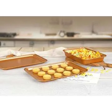 SIOODO Original Cookie Sheet & Roasting Tray Set - 3 pcs Toxic Free NONSTICK - Organic Environmental Friendly Premium Coating - Durable Quality - 2 X Baking Sheets 1 X Roasting Pan - BAKEWARE