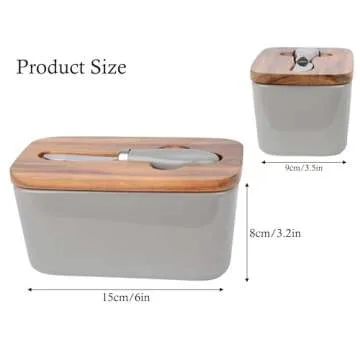SIPARUI Butter Dish with Lid for Countertop,Large Butter Dish Ceramics Butter Keeper Container with Knife,Ceramic Butter Container With Airtight Cover,Good Kitchen Gift(Grey)