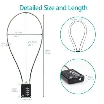 Show moreIntroducing the SISAV 4 Digit Cable Combination Locks: a perfect blend of security and convenience designed for everyday needs. This durable padlock is made from high-quality zinc alloy, ensuring that it withstands the rigors of frequent use while maintaining a sleek appearance. The robust 50cm (19.6in) steel cable, constructed from a 3 mm diameter bold cable, offers both strength and flexibility, making it suitable for various applications. Its compact size and lightweight nature allow for easy storage and carrying, making it a go-to security solution for students, gym-goers, travelers, or anyone in need of reliable protection.