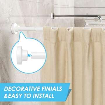 Show more Transform your living space with the innovative SISELBA shower curtain tension rod, designed to enhance both functionality and aesthetics. This versatile product is not just for bathrooms; its adaptability allows for installations in various settings, from closets to kitchens, ensuring a perfect fit wherever you need it. Its large rubber anti-slip head increases friction by 30%, making it secure on a variety of surfaces including wood, glass, tile, and metal. With a smart adjustment system, it can easily extend from 42 to 73 inches, catering to your specific space requirements.