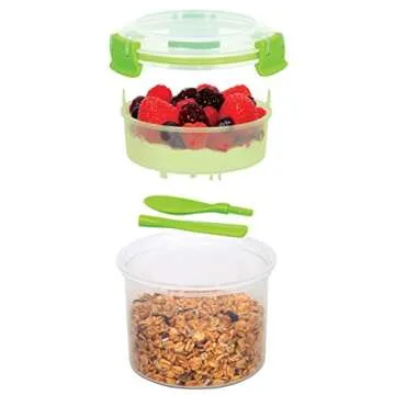 Show moreStart your mornings right with the Sistema To Go Collection Breakfast Bowl, a kitchen essential designed to keep your ingredients fresh and separate until you're ready to enjoy your meal. This innovative breakfast bowl boasts a spacious 17.9-ounce (0.5-liter) capacity, allowing you to store a variety of ingredients such as cereals, yogurts, fruits, and toppings without compromising on freshness or taste. Constructed from 100% virgin plastic, this bowl is both Phthalate- and BPA-free, ensuring you can enjoy your delicious breakfast with confidence. Its secure lid features easy-locking clips, and a flexible extended seal that works perfectly to keep your contents fresh, making it ideal for on-the-go breakfasts or packing for a day out.