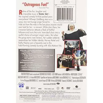Show moreRelive the joy and laughter with the Sister Act, the timeless classic featuring the incredible Whoopi Goldberg in one of her most iconic roles. This DVD is a perfect addition to your collection, showcasing a heartwarming story filled with humor, catchy music, and uplifting themes. Whether you're a long-time fan or discovering it for the first time, this film is sure to leave you with a smile on your face and a song in your heart. In Sister Act, Deloris Van Cartier, played by Whoopi, goes from a lounge singer to a nun in an attempt to hide from the mob. What unfolds is a delightful journey of transformation and the power of sisterhood, making it a must-watch for families and friends alike.