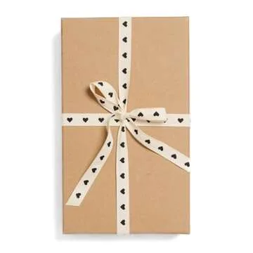 Sisterly Market Cotton Herringbone Custom Ribbon Natural 5/8' x 10 Yards (5/8 inch, Black Hearts)