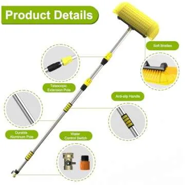 Equipped with a 12-inch soft bristle head, this car wash brush is designed specifically to provide a scratch-free clean on delicate surfaces like car paint without leaving any unsightly marks. The innovative flow-through water design means you can connect a hose directly to the brush, allowing water to flow through efficiently and ensuring you cover larger surfaces quickly and effectively. Perfect for a variety of applications, this versatile tool is your go-to cleaning companion!