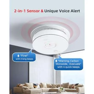 SITERWELL Smoke Detector, Smoke and Carbon Monoxide Detector with Voice Speaker, LED Light and Auto-Check, Smoke Alarm and Carbon Monoxide Detector Conforms to UL 217 & UL 2034 Standards, 4 Pack