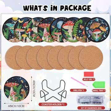 Show moreDiscover the delightful world of creativity with the Sitsink Mushroom Diamond Art Coasters. This enchanting DIY kit invites you to transform ordinary drink coasters into vibrant works of art that are not only visually stunning but also functional. Each set includes 8 unique mushroom-themed coasters, crafted with exquisite detail and reverberating with color. Measuring approximately 4 inches, these coasters are perfectly sized to accommodate your coffee mugs, wine bottles, or even spice jars, making them an essential accessory for your dining experience.