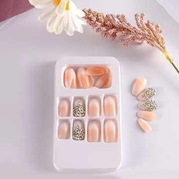 SIUSIO 24 Pcs French Nails Full Cover 3D Diamond Fake Nail Natural False Acrylic Nails Art Tips Sets for Daily Use
