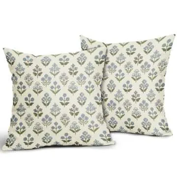 Sivirary Blue Green Block Print Pillow Covers 18x18 Inch Set of 2, Vintage Floral Spring Decorative Throw Pillow Cases Boho Cushion Covers Rustic Decoration Gift Farmhouse Sofa Couch Bed Decor