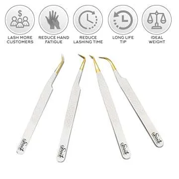 SIVOTE Fiber Tip Lash Tweezers for Eyelash Extensions with Diamond Grip, White, Set of 4 - Precise Tips Japanese Steel for Classic, Volume & Mega Volume Lashes, Anti-Rust - Ideal for Lash Artists