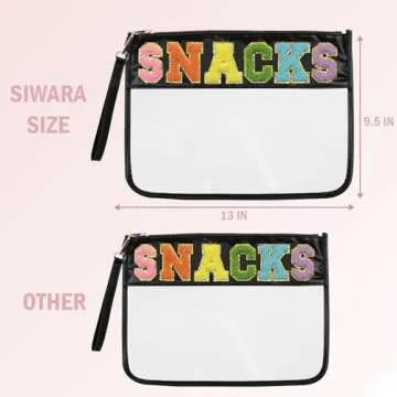 Siwara Snack Pouch Travel Makeup Bag Chenille Letter Clear Snack Bag for Travel Nylon Clear Cosmetic Bag Large Snacks Bags Makeup Travel Bags for Women (Black-Snacks)