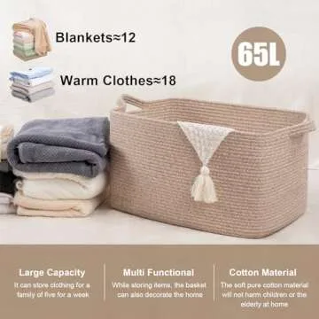 SIXDOVE 65L Large Storage Basket, Cotton Rope Woven Blanket Basket, Toy Basket for Baby Room, Basket for Storage in Living Room, Brown