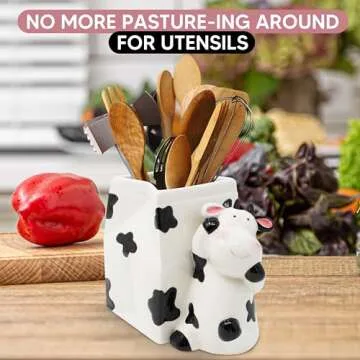 Sixdrop Utensil Holder | Cow Gifts for Women | Cow Stuff Print Kitchen Crock Storage | Accessories Decoration for Women | La Vaca Animal Cow Decor | Countertop Cow Stuff Vase