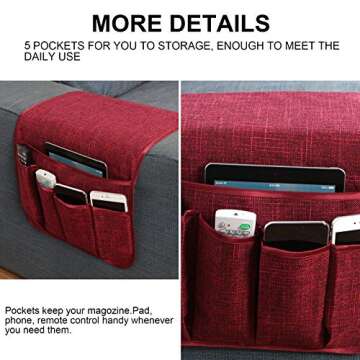 Show more The Sixyotie Sofa Armrest Organizer is the perfect solution for keeping your living space tidy while ensuring that all your essentials are within arm's reach. Made from durable linen fabric, this caddy boasts remarkable softness while being resistant to wrinkles, colors fading, and shrinking. Not only is it machine washable, making it easy to care for, but its robust design ensures it withstands daily use. Whether you're cozying up with a book or watching TV, this armrest organizer becomes your new best friend.