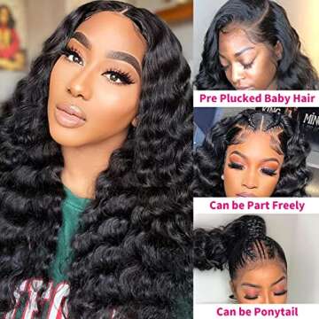 Siyun Show Loose Deep Wave Lace Front Wigs Human Hair 180% Density 13x4 HD Lace Front Wigs Human Hair Pre Plucked Transparent Lace Frontal Wigs Brazilian Virgin Human Hair Natural Color 28 Inch