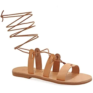 Size 6 Beige Emmanuela Ancient Greek Style Calf High Leather Sandals, Handmade Gladiator Tie up Sandals, Quality Strappy Summer Shoes, Boho Chic Open Toe Lace up Sandals