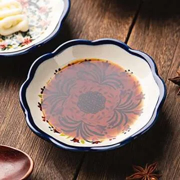 Sizikato 4pcs Porcelain Appetizer Plate, 4-Inch Snack Plate Sauce Dipping Saucer, Exotic Flower Pattern