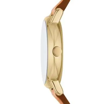 Currently, this model is available in a stylish gold accent with a brown leather strap.
