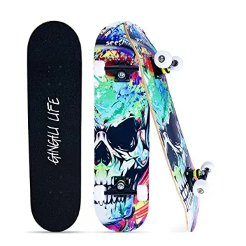 Show moreGet ready to elevate your skateboarding experience with our exceptional complete skateboard, expertly designed for skaters of all ages and skill levels! With its streamlined size of 31 inches in length and 8.0 inches in width, this skateboard combines style with outstanding functionality. The double kick concave surface provides superb balance and control, making it ideal for beginners and pros alike. Crafted from 7-layer thick Canadian maple wood, it is built to withstand weights up to 220 lbs, allowing riders to enjoy a stable and durable experience.