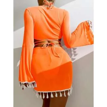 SKAYS Bikini Sets for Women,Bathing Suit for Women,Womens Bikini,Women’s Bikini Swimsuit Cover Up,4 Piece Swimsuits Orange L