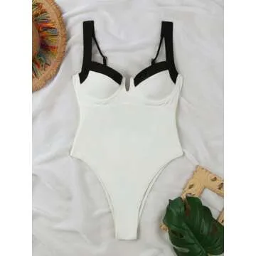 Show moreIntroducing the SKAYS Womens V Wire Push Up One Piece Swimsuits, the ultimate blend of fashion and function for your beachwear collection. This stylish bathing suit features a vibrant color block design that not only looks amazing but also enhances your natural curves with its built-in support. Enjoy the confidence of a secure fit, perfect for a day by the pool, playing beach volleyball, or lounging under the sun. Plus, the cute tie back offers adjustable comfort, ensuring a customized fit for every body shape.