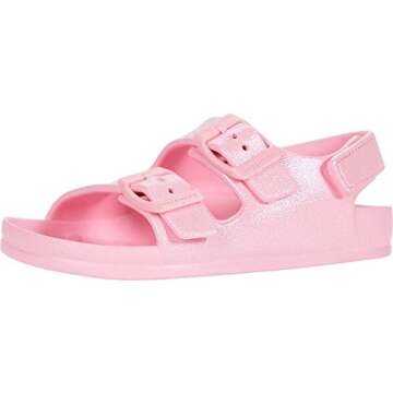Part of the renowned Foamies collection, which was formerly known as Cali Gear, these sandals boast a lightweight construction, making them ideal for all-day wear. Your child will enjoy endless summer adventures without feeling weighed down. Plus, the stylish appearance, complemented by a bit of shimmer, means they’ll look fabulous whether at the beach, park, or backyard!