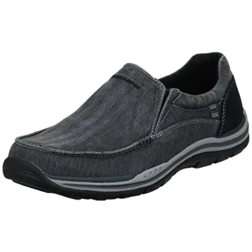 Show moreStep into comfort and style with the Skechers Men's Expected Avillo Moccasin. Designed for those who refuse to compromise on comfort or fashion, these slip-on shoes are a testament to Skechers' commitment to quality. Featuring a lightly padded collar for ankle comfort and concealed gored insets for easy wear, these shoes are as practical as they are stylish. The embroidered logo at the vamp adds a touch of elegance, making these shoes a perfect blend of casual and chic.