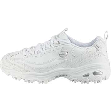 Skechers Sport womens D'LITES FRESH START Memory Foam Lace-up Sneaker,White Silver,9 M US