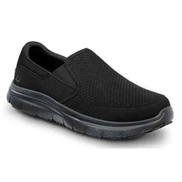 Show moreIntroducing the Skechers Work Ella, a perfect blend of style and functionality tailored for the modern working woman. Crafted with a nubuck leather and breathable mesh upper, these athletic slip-ons are designed to keep you comfortable throughout your busy day. With a unique water and stain resistant upper equipped with Scotchgard protection, these shoes promise longevity and ease of maintenance. Enjoy the dual side elastic panels that offer a convenient slip-on fit, ensuring you can quickly put them on as you rush out the door. The SR Max MaxTrax rubber outsole provides superior oil and slip resistance, making it the ideal choice for various work environments.