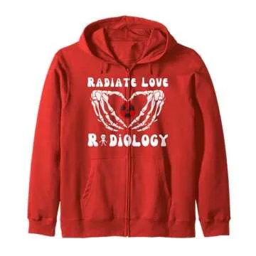Skeleton Radiate Love Radiology RAD Tech Hearts Valentines Zip Hoodie