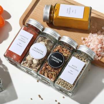 Skiileor 25 Pcs Spice Jars with Labels- Glass Spice Jars with Labels,Shaker Lids, Funnel, Chalk Pen, Brush,4oz Seasoning Containers Bottles for Spice Rack, Cabinet, Drawer