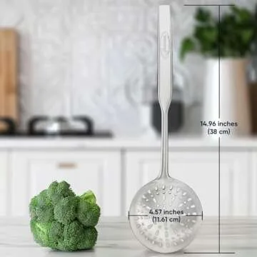This ladle not only excels in functionality but also features an ergonomic handle that is vacuum-insulated to resist heat transfer. Weighing in at just 0.44 LB and measuring a generous 14.96 inches long with a 4.57 inches diameter scoop, it promises a comfortable grip and optimal control every time you cook.