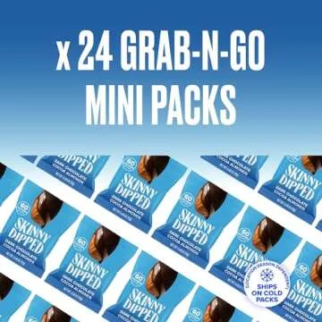 Show moreIntroducing SkinnyDipped Dark Chocolate Cocoa Almonds, the ultimate guilt-free treat that perfectly balances health and indulgence. Crafted from the finest, heart-healthy almonds, each crunchy bite is roasted to perfection and lovingly coated with a rich layer of dark chocolate, enhanced by a delicate sprinkle of sea salt. With only 4g of sugar per serving, these delectable snacks offer a delicious way to satisfy your sweet tooth while sticking to your health goals. Packaged in convenient 0.46 oz mini bags, they’re designed for on-the-go enjoyment, making them ideal for your busy lifestyle.