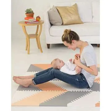 Skip Hop Baby Play Mat, Interlocking Foam Floor Tiles, 70" x 56", Playspot, Grey/Peach