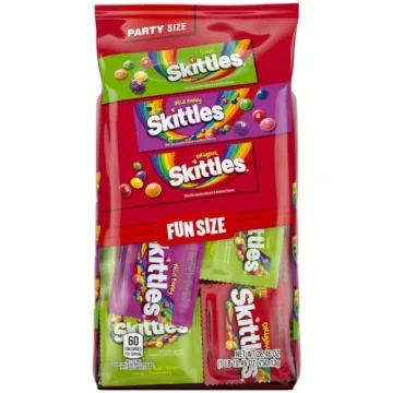 Show moreIndulge in the vibrant world of sweets with the SKITTLES Original, Wild Berry & Sour Chewy Candy Bulk Bag. This impressive 26.46-ounce party-size assortment is perfect for any festive occasion, especially Halloween. Bringing together three beloved flavors—Original, Wild Berry, and Sour—this assortment serves as a delightful treat for candy lovers of all ages. Each fun-sized pack is individually wrapped, making it easy to share and enjoy. The rich, chewy texture and fruity flavors create a thrilling candy experience that promises to satisfy any sweet tooth. Ideal for filling goody bags, piñatas, or simply to have on hand for spontaneous candy cravings, this bulk bag of SKITTLES guarantees a festive touch to any gathering.