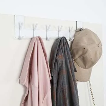 SKOLOO Over The Door Hook White, Door Coat Rack for Entryway, Over Door Towel Hook for Bathroom, Stainless Steel Door Coat Hook for Hanging Backpack, Jacket, Robes, Purse