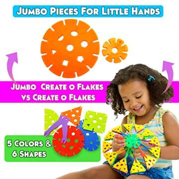 Show more Introducing the Skoolzy Rainbow Jumbo Creative Flakes 120 Piece Set - a vibrant and versatile building toy designed specifically for toddlers! This set encourages limitless creativity and imaginative play with unique snowflake-shaped blocks that easily interlock, allowing your child to construct everything from simple shapes to intricate structures. Perfectly sized for small hands, these easy-to-grasp pieces promote fine motor skills while keeping little ones engaged for hours. Brightly colored, this engaging toy is perfect as both a toddler boy's toy and girl's toy, making it an ideal gift for any budding architect or artist.