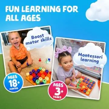 Introducing the Skoolzy Toddler Peg Board Set - your ultimate educational playtime companion that transforms ordinary play into extraordinary learning experiences. Ideal for young children aged 2-4 years, this vibrant set is more than just a toy; it's a gateway to developing essential skills in a fun and engaging way. The package comes complete with a colorful foam peg board measuring 8 1/4" x 8 1/4" x 1/4", accompanied by 30 oversized pegs in six bright colors (red, orange, yellow, green,...