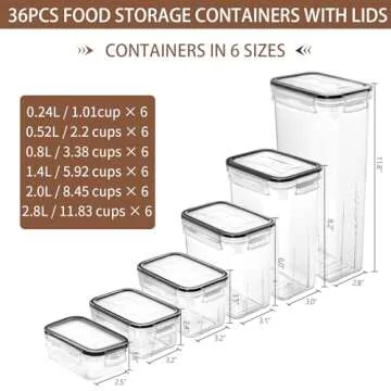 Show more Introducing the Skroam Kitchen Pantry Storage Set, a revolutionary way to organize your kitchen essentials! This outstanding set includes an impressive variety of 6 sizes, ranging from 0.24L to a generous 2.8L, allowing you to store anything from flour and sugar to snacks and cereals. Each container is crafted with an airtight locking lid, complete with a silicone gasket, perfectly designed to maintain freshness and protect your food from moisture or pests. No more stale snacks or stale flour!