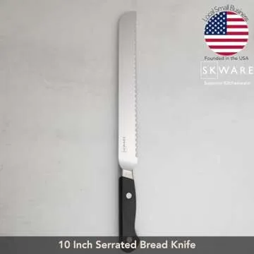 Show moreIntroducing the SKWARE Bread Knife, a culinary essential designed for both home cooks and professional chefs. This premium 10-inch bread slicer features a traditional wavy serration that guarantees consistent, straight cuts every time. Whether you're slicing through soft homemade loaves or tougher artisan breads, this knife ensures optimal performance in any kitchen setting, from cozy homes to bustling restaurants.