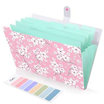 SKYDUE Expanding File Folders - Floral Accordion Organizer with 8 Labels
