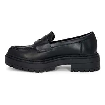 Skye - Women's Lug Sole Slip On Low Heel Platform Penny Loafers (All Black, 7.5)