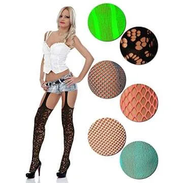 Skylety 6 Pairs Women Fishnet Thigh-High Stockings Tights Suspender Pantyhose Stockings for Women(Medium-large,White, Grey, Carmine, Light Blue, Fluorescent Green, Black)