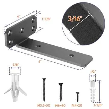 Show moreTransform your space with the SKYSEN 6 Pack 6" Floating Shelf Bracket, the perfect combination of style and functionality. Designed to provide a stunning floating shelf look, these heavy-duty brackets are engineered for stability and ease of installation. Each bracket undergoes rigorous testing to ensure a precise 90-degree bend, allowing your shelves to remain level and secure while safely supporting your cherished items.